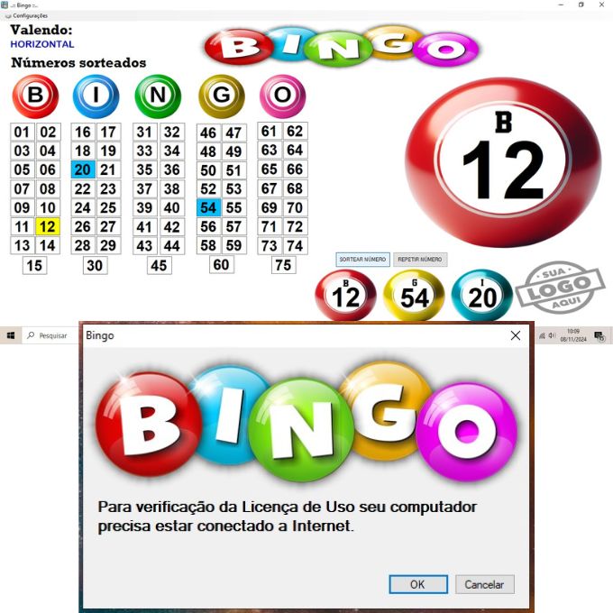 - É possível colocar outro cabeçalho no lugar da palavra BINGO na parte superior do sistema (usar uma imagem retangular).